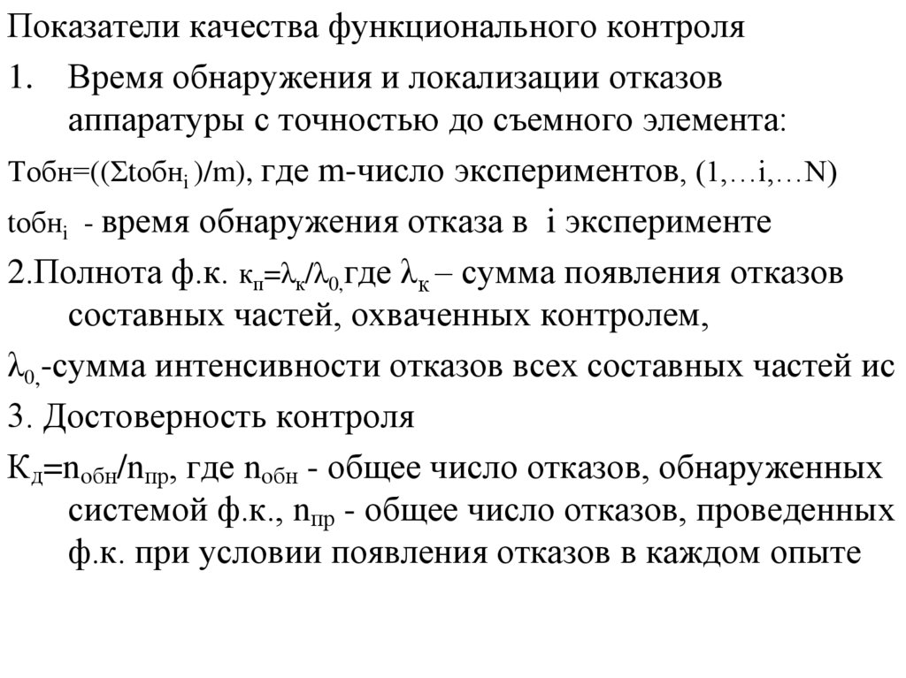 Показатели качества функционального контроля1. Время обнаружения и локализации отказов