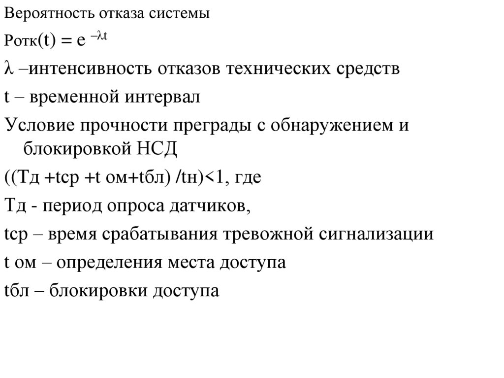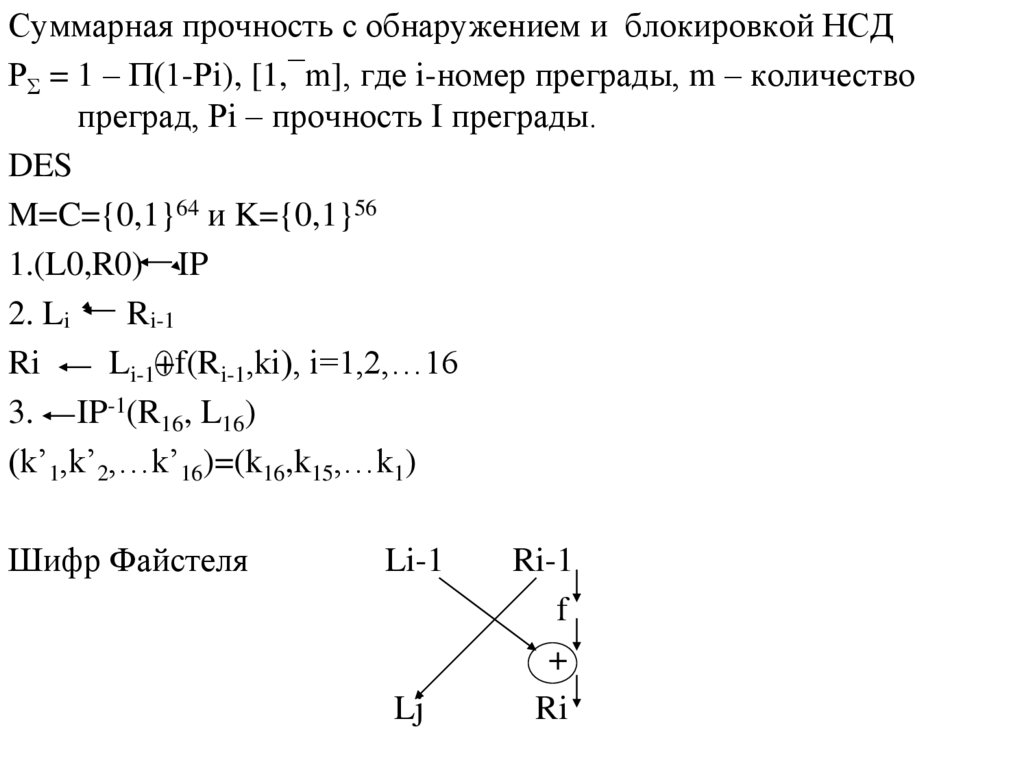 Суммарная прочность с обнаружением и блокировкой НСДРΣ = 1 – П(1-Рi), [1,¯m], где i-номер преграды, m – количество