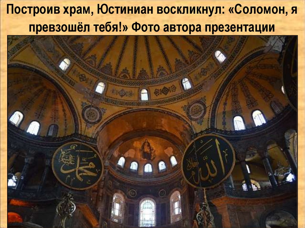 Построив храм, Юстиниан воскликнул: «Соломон, япревзошёл тебя!» Фото автора презентации