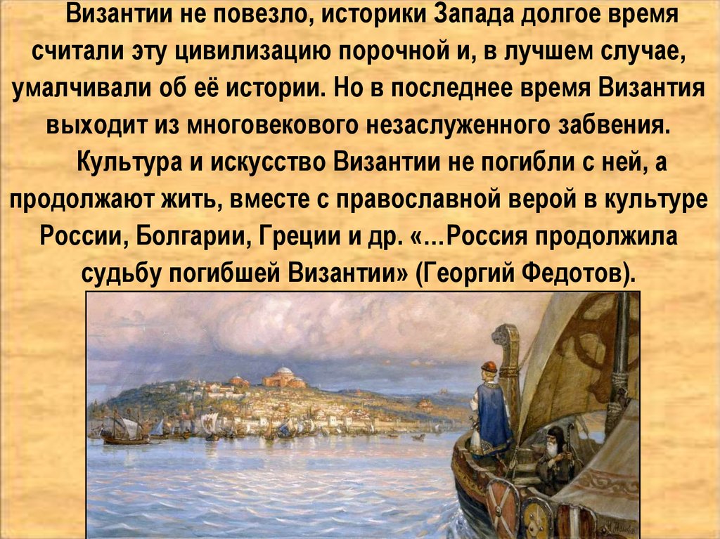 судьбу погибшей Византии» (Георгий Федотов).