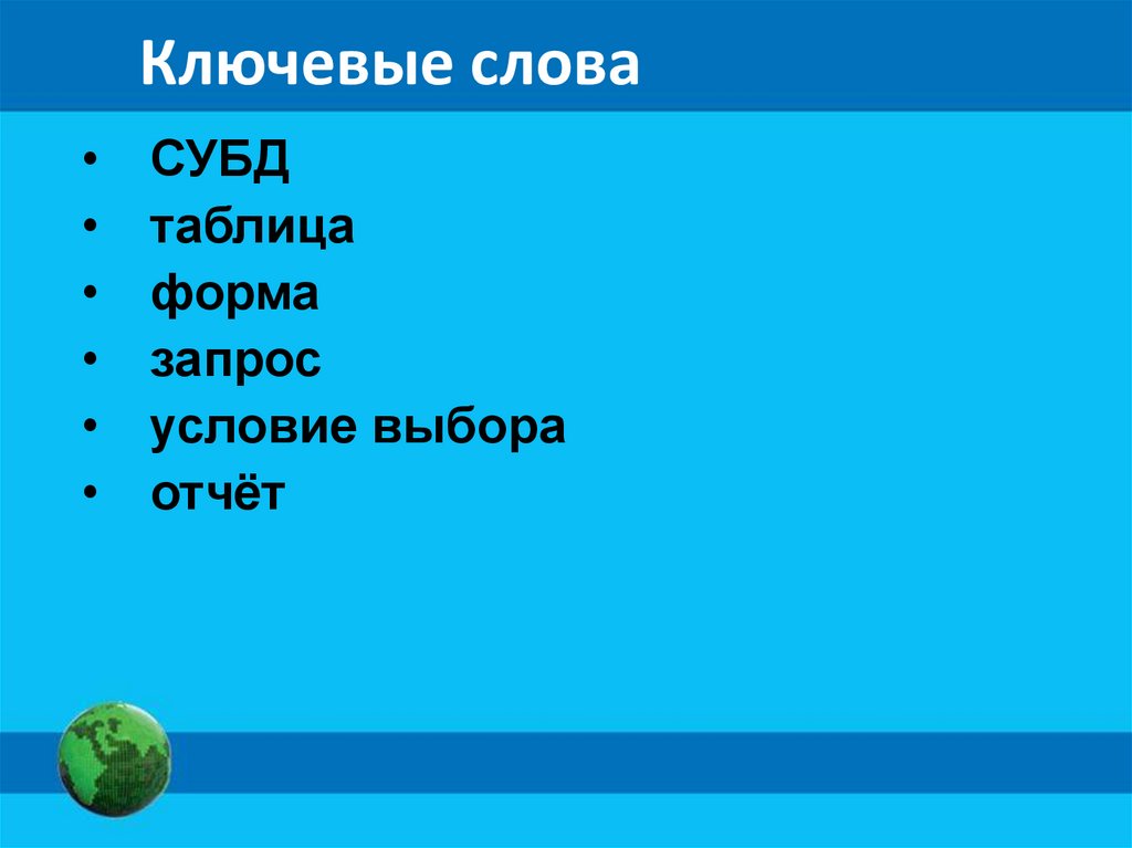 Ключевые словаСУБД