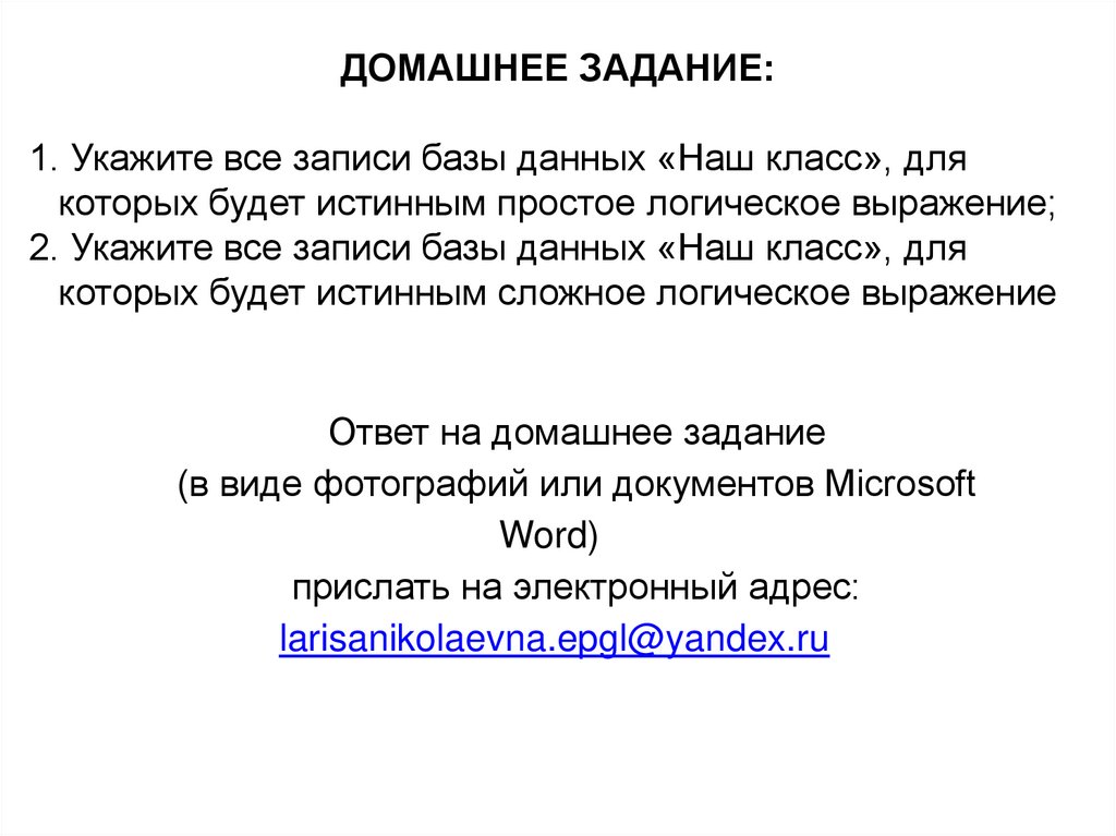 ДОМАШНЕЕ ЗАДАНИЕ:1. Укажите все записи базы данных «Наш класс», для