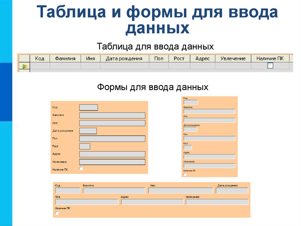 Формы для ввода данных