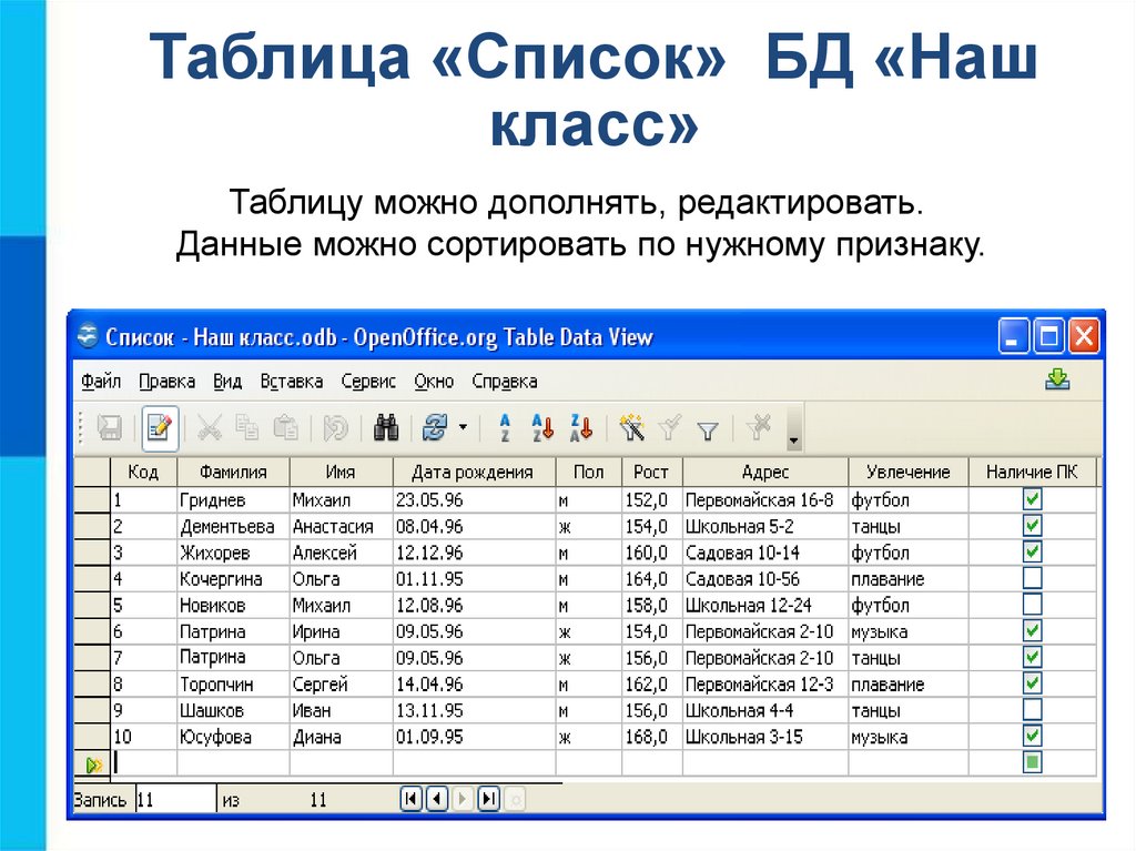 2. Укажите все записи базы данных «Наш класс», для