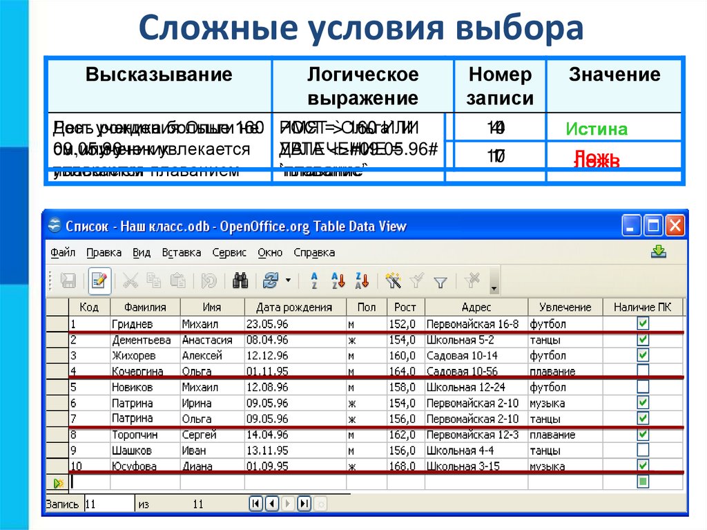 Сложные условия выбораВысказывание