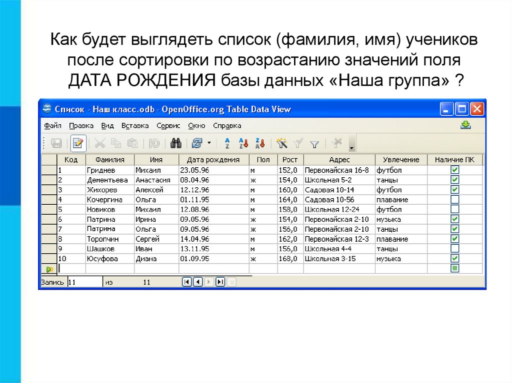 ДАТА РОЖДЕНИЯ базы данных «Наша группа» ?
