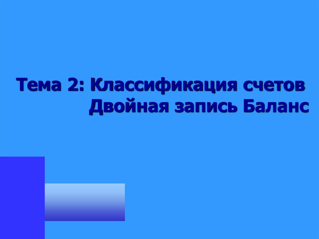 2. Счета. Классификация счетов. Двойная запись. Баланс