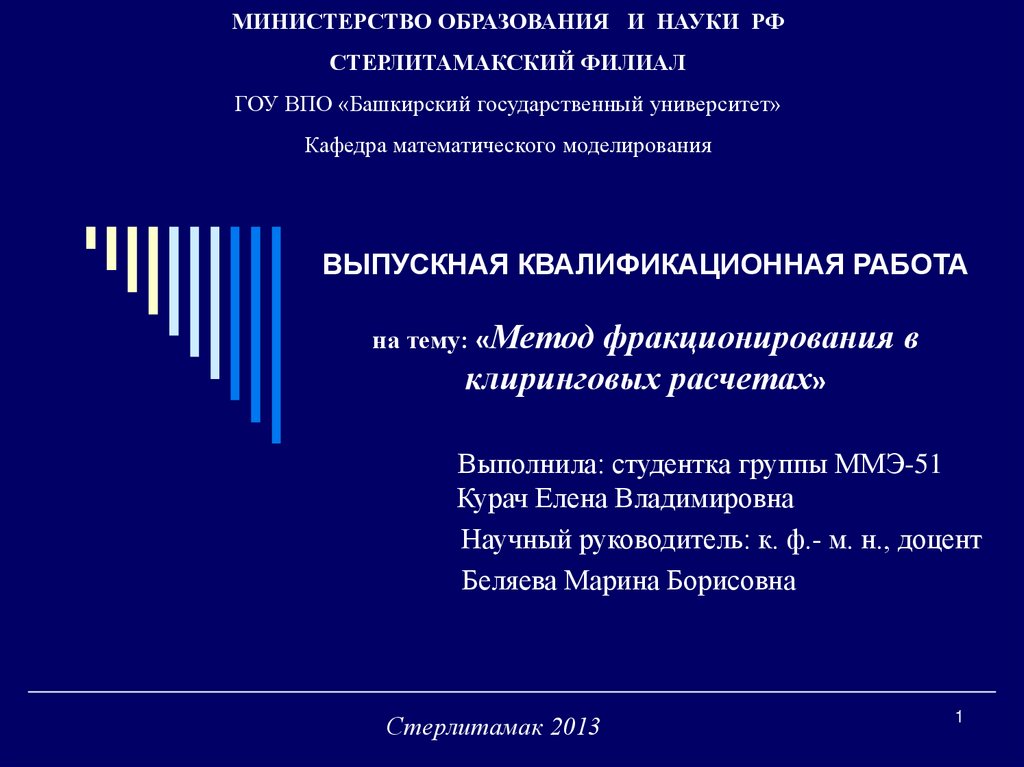 МИНИСТЕРСТВО ОБРАЗОВАНИЯ И НАУКИ РФСТЕРЛИТАМАКСКИЙ ФИЛИАЛ
