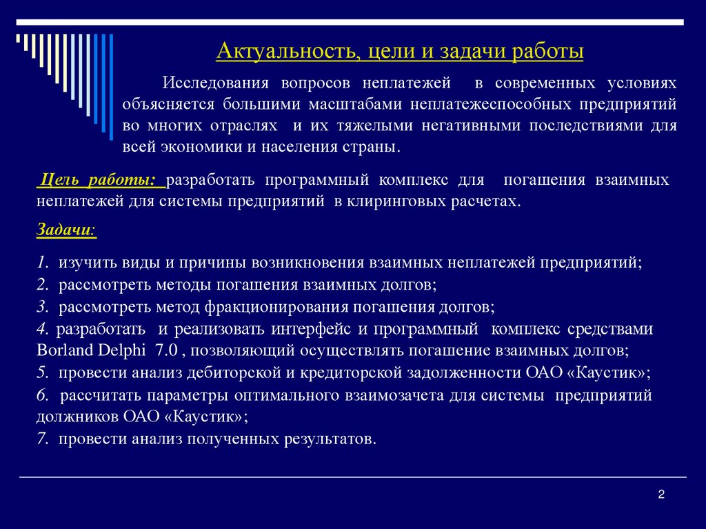 Актуальность, цели и задачи работыИсследования вопросов неплатежей в современных условиях