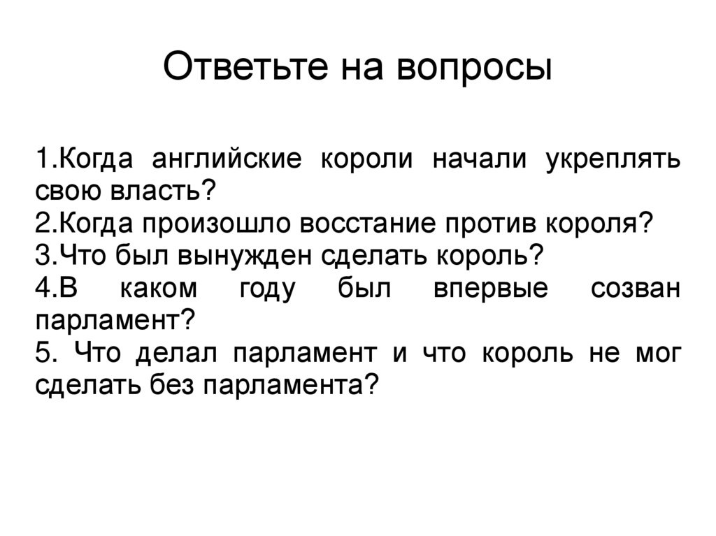 Ответьте на вопросы1.Когда английские короли начали укреплять