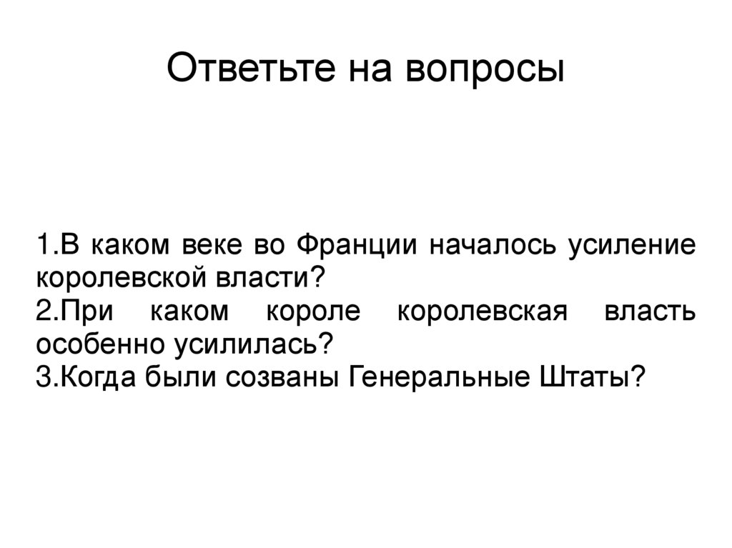 Ответьте на вопросы1.В каком веке во Франции началось усиление