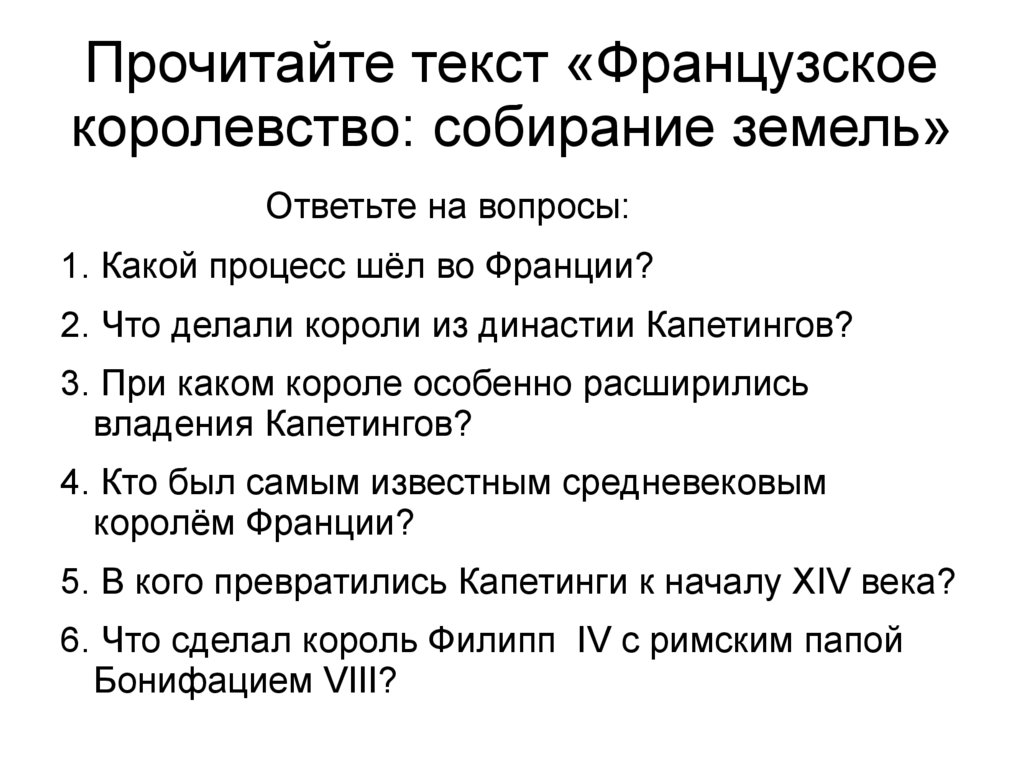 Прочитайте текст «Французскоекоролевство: собирание земель»