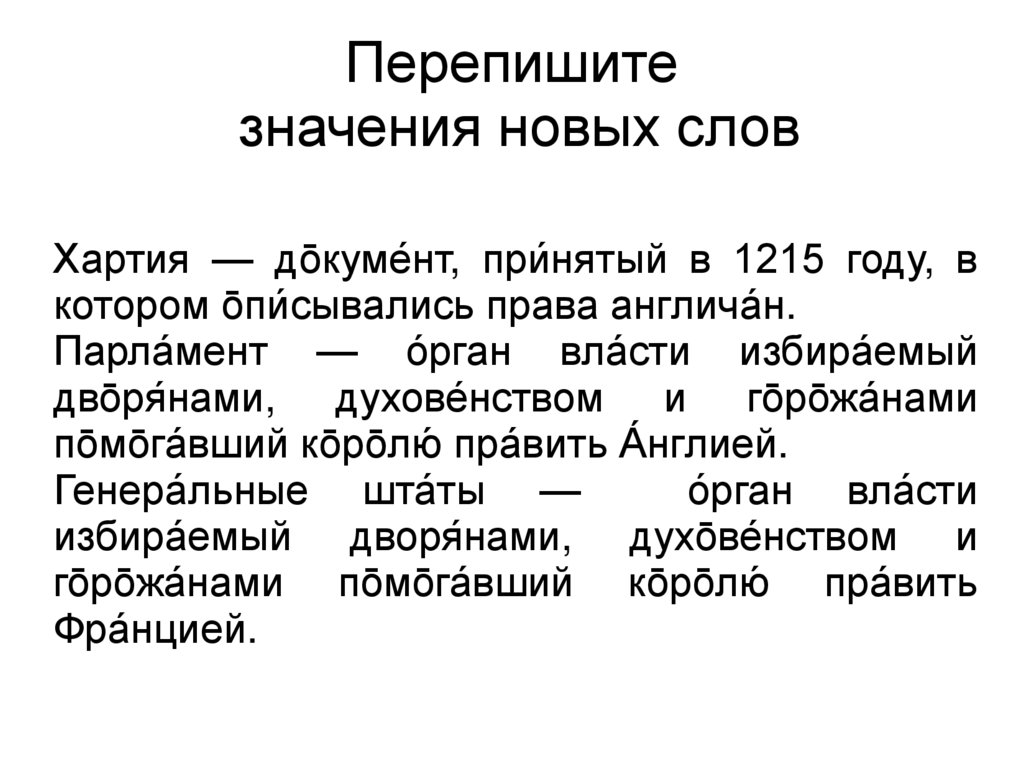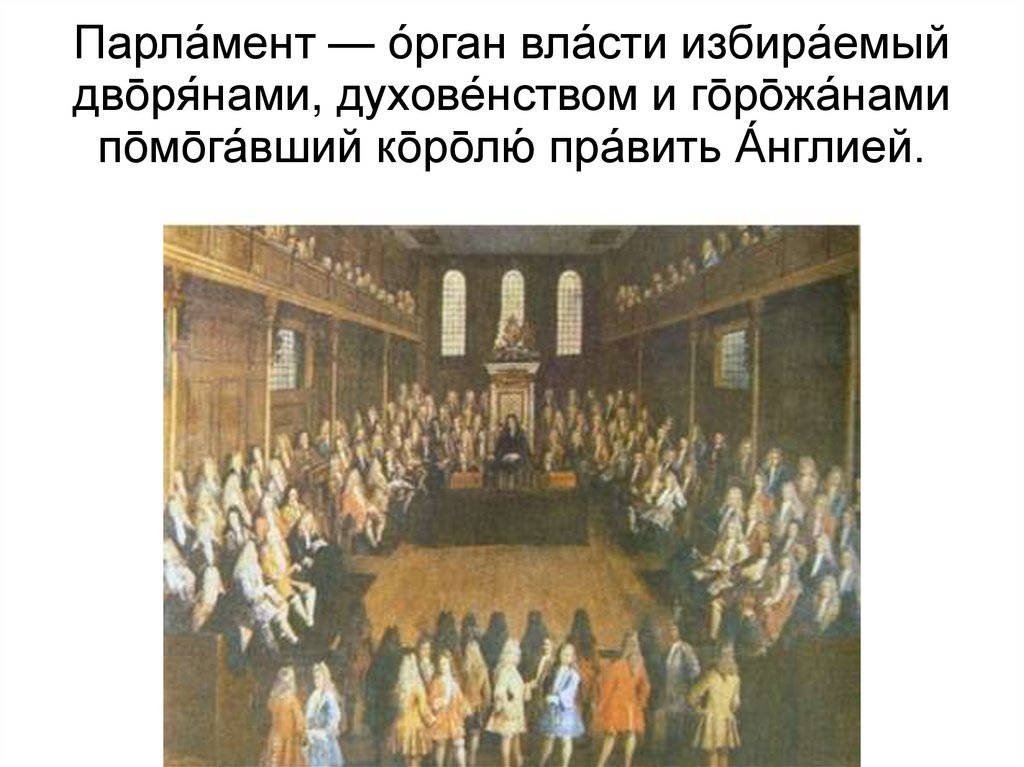 Парла́мент — о́рган вла́сти избира́емыйдво̄ря́нами, духове́нством и го̄ро̄жа́нами