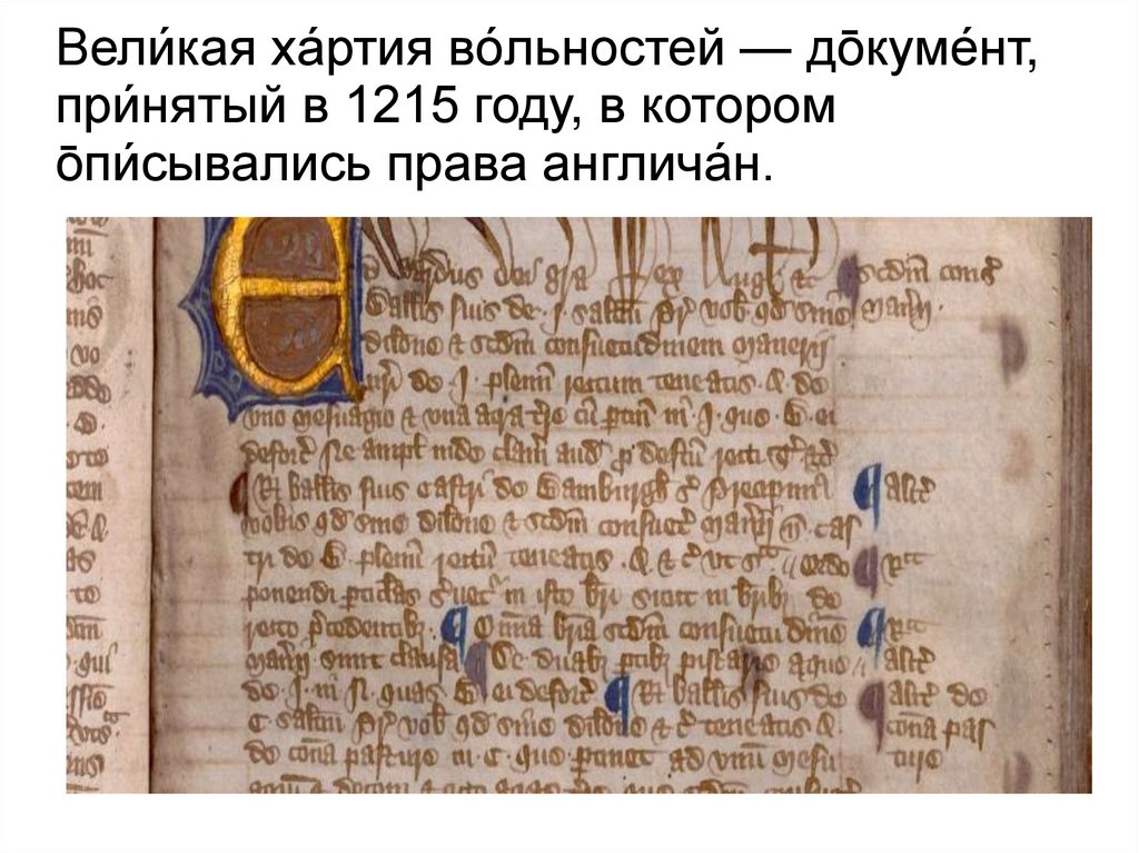 котором о̄пи́сывались права англича́н.