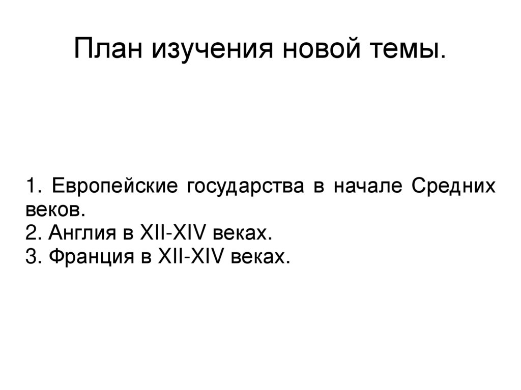 План изучения новой темы.1. Европейские государства в начале Средних