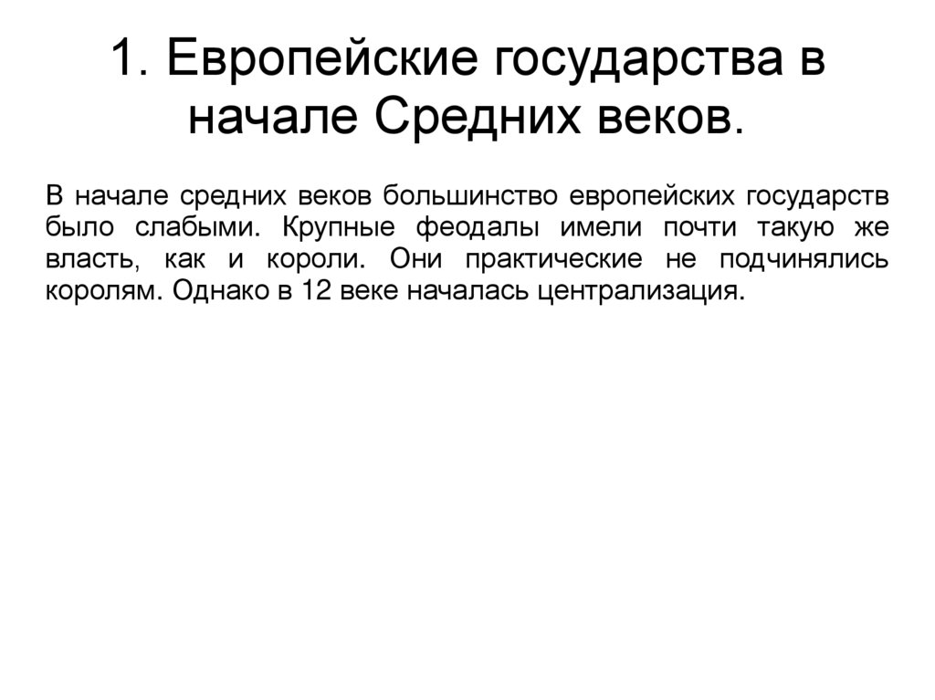 1. Европейские государства вначале Средних веков.