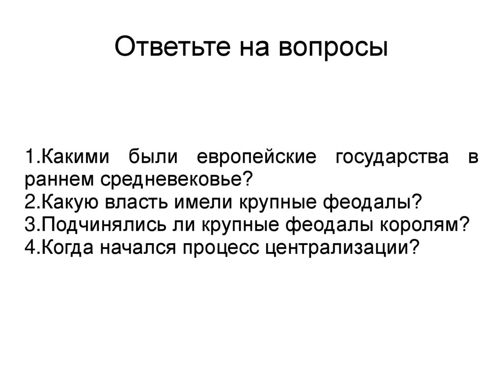 Ответьте на вопросы1.Какими были европейские государства в