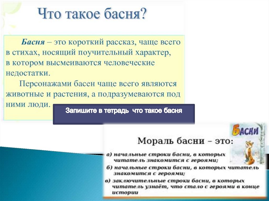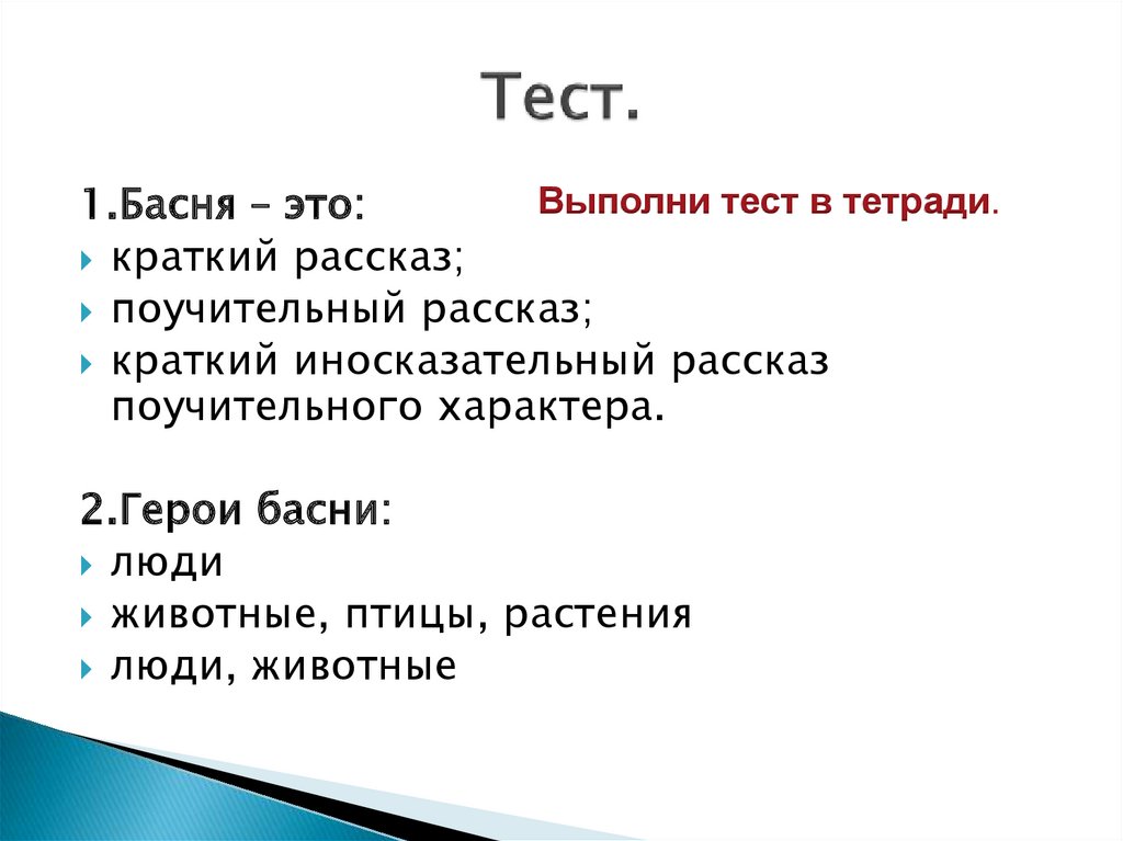 Выполни тест в тетради.1.Басня – это: