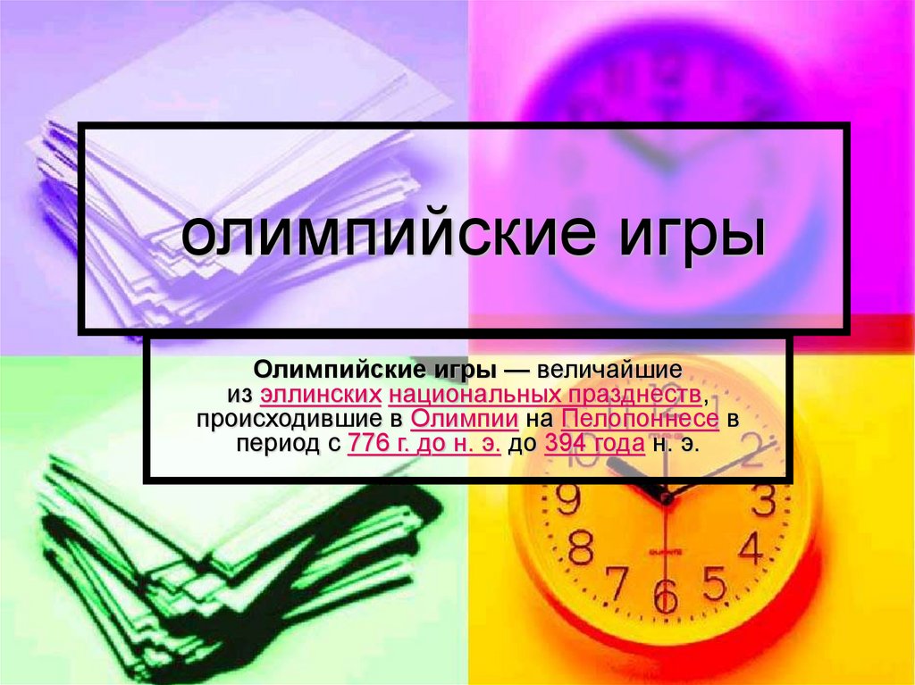 Олимпийские игры — величайшиеиз эллинских национальных празднеств,
