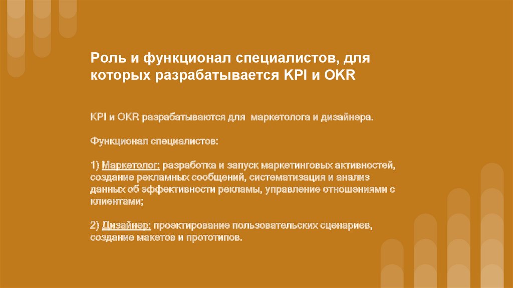 Роль и функционал специалистов, длякоторых разрабатывается KPI и OKR
