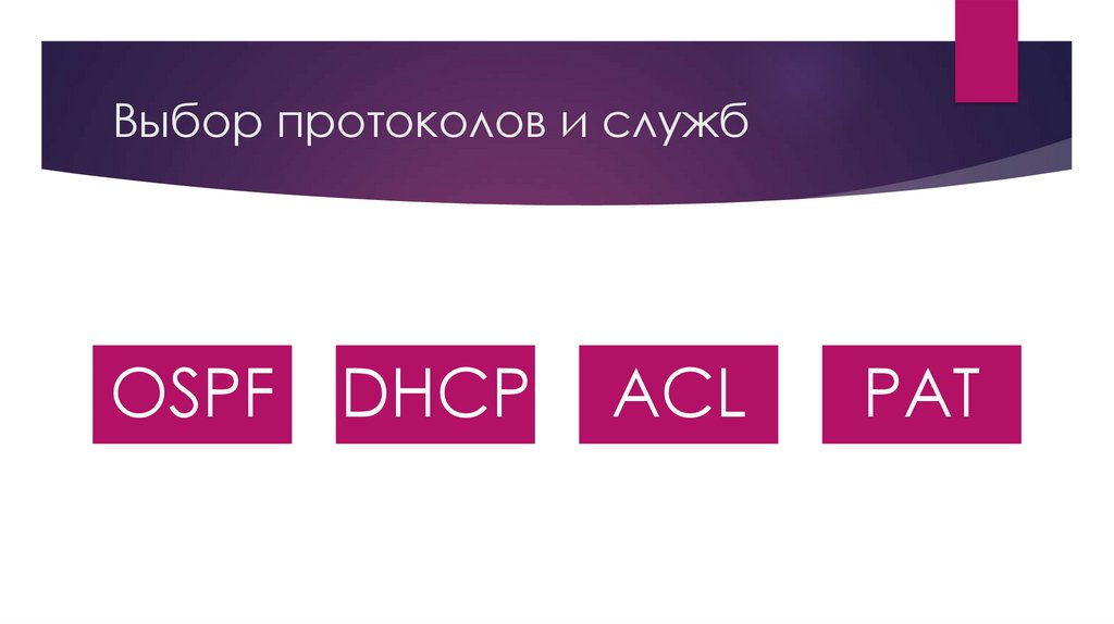 Выбор протоколов и службOSPF DHCP