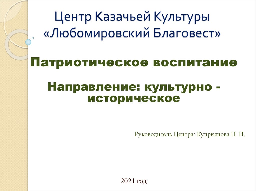 1. Центр Казачьей Культуры «Любомировский Благовест»