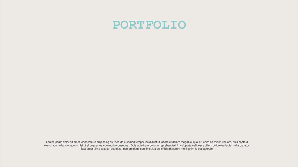 PORTFOLIOLorem ipsum dolor sit amet, consectetur adipiscing elit, sed do eiusmod tempor incididunt ut labore et dolore magna aliqua. Ut enim ad minim veniam, quis nostrud