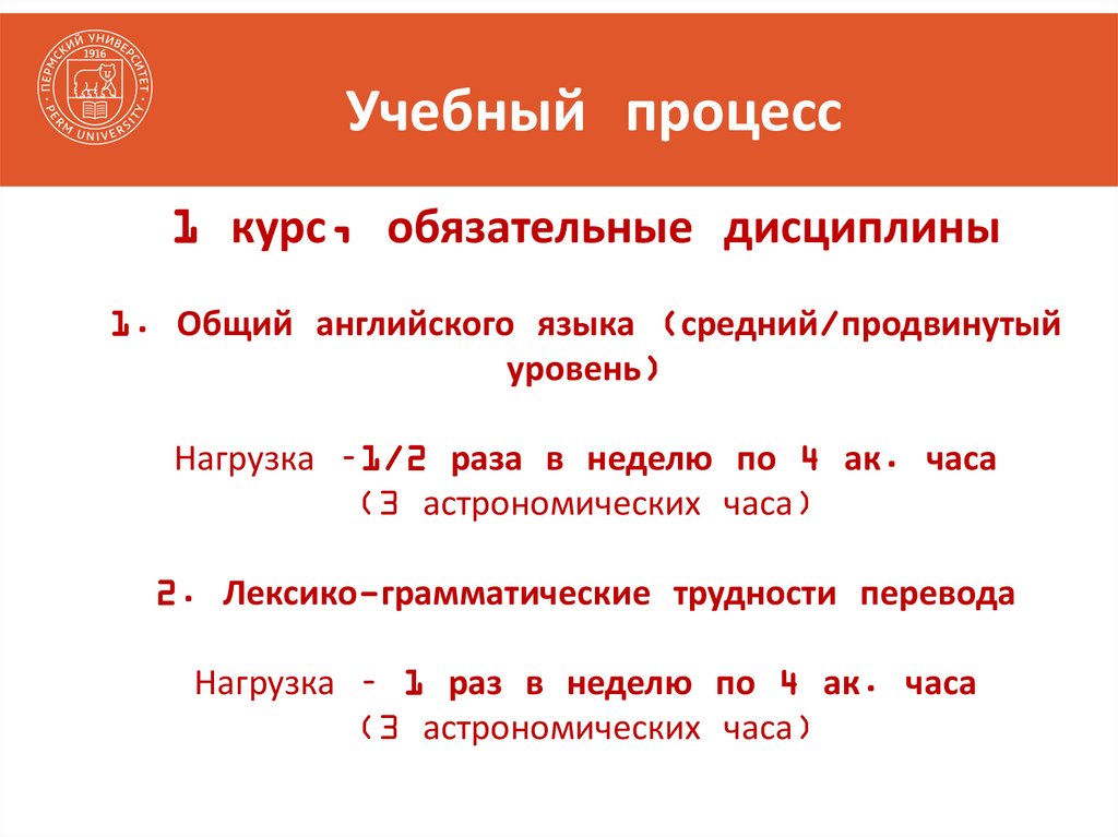 Нагрузка –1/2 раза в неделю по 4 ак. часа