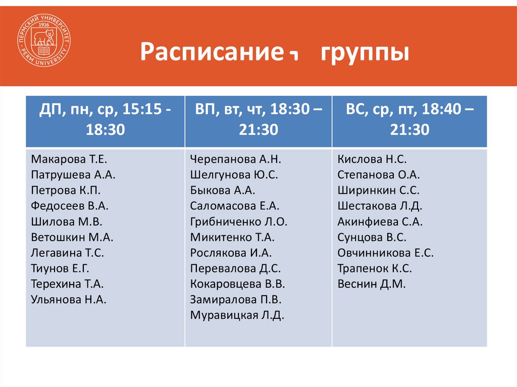 Расписание, группыДП, пн, ср, 15:15 18:30