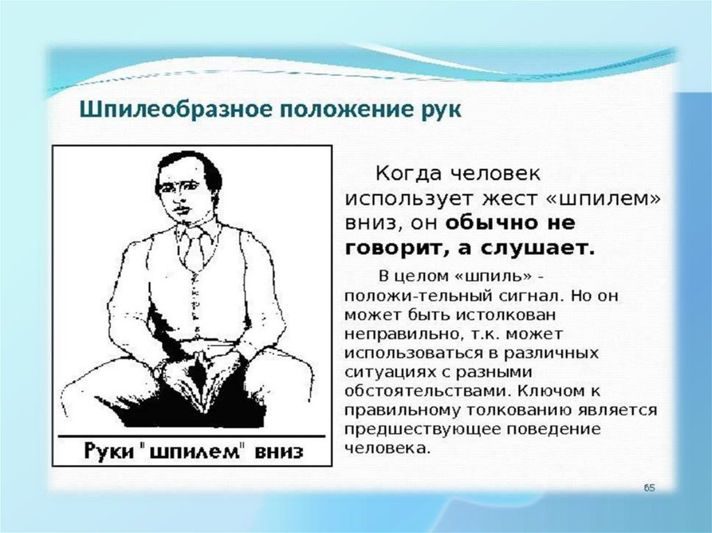Система жестов :• Помогают донести до собеседника послание,