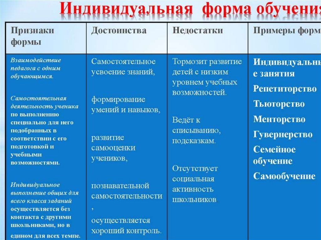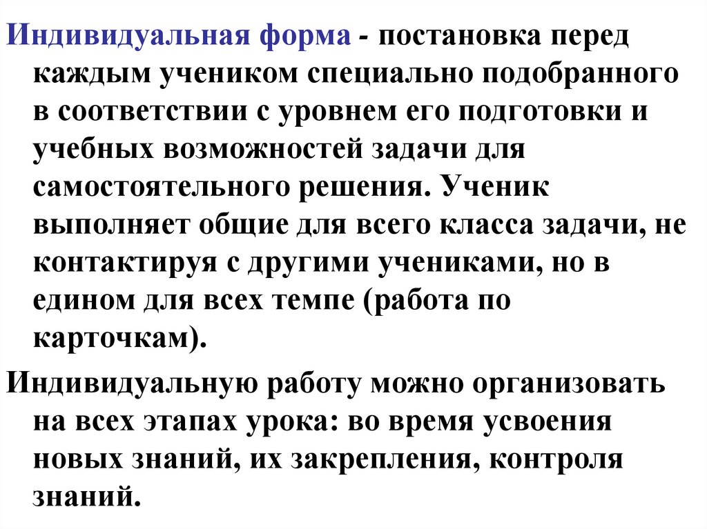 Индивидуальная форма - постановка передкаждым учеником специально подобранного