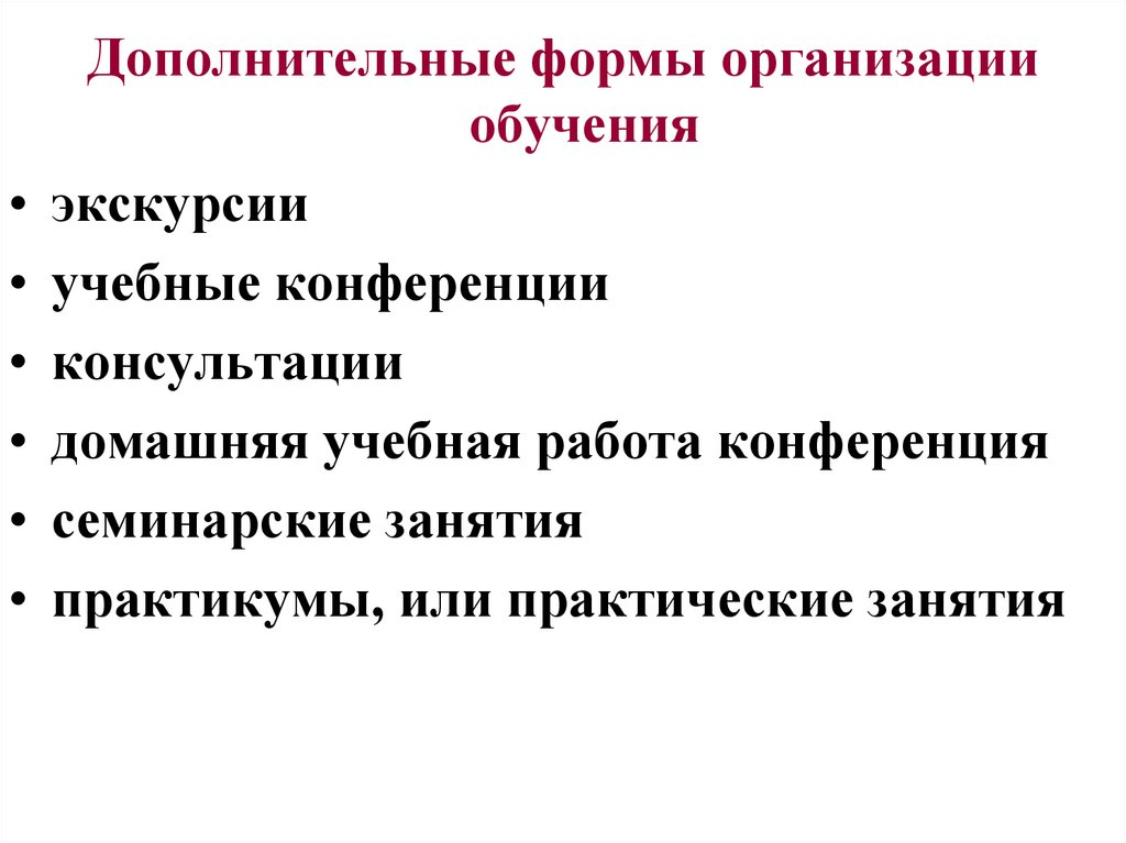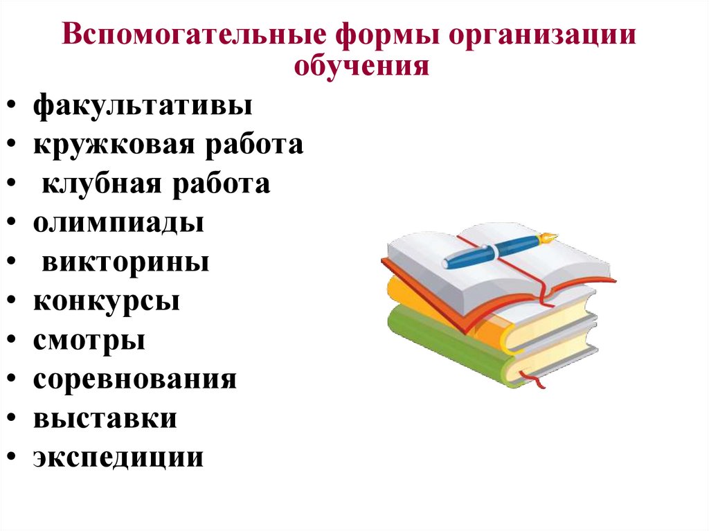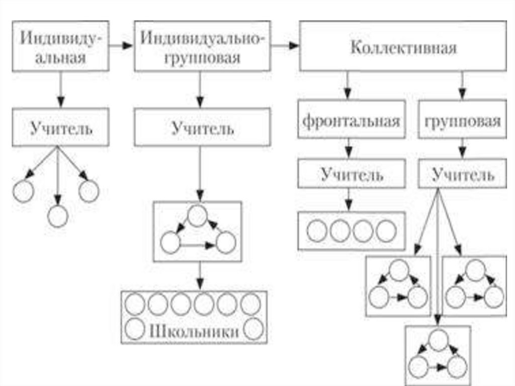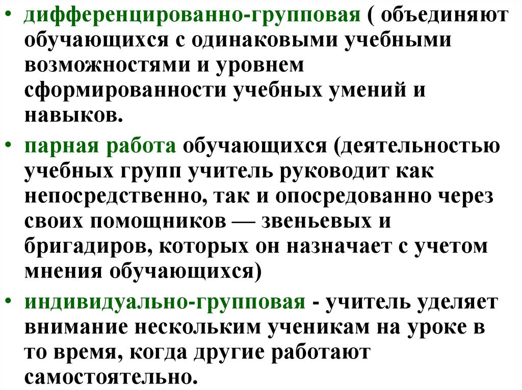 • дифференцированно-групповая ( объединяютобучающихся с одинаковыми учебными