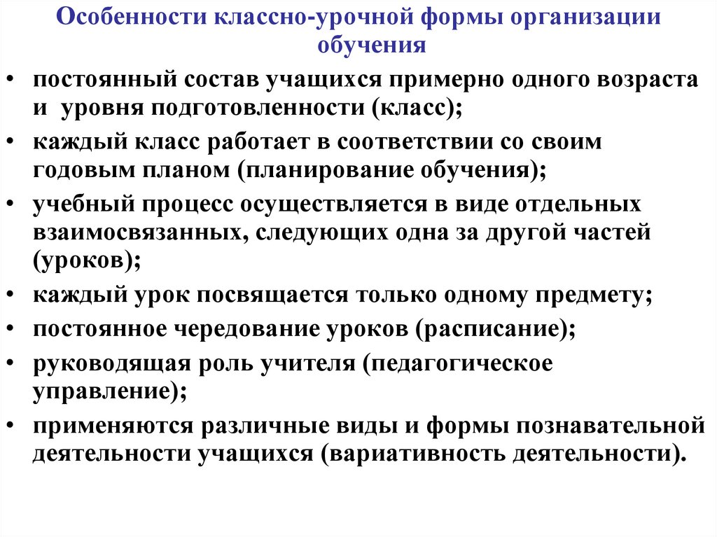 Урок - основная форма обученияНаибольшее распространение как в нашей