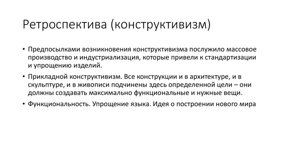 Ретроспектива (конструктивизм)• Предпосылками возникновения конструктивизма послужило массовое