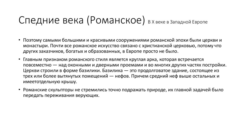 Спедние века (Романское) В X веке в Западной Европе• Поэтому самыми большими и красивыми сооружениями романской эпохи были церкви и