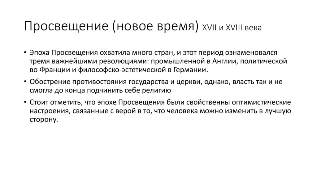 • Стоит отметить, что эпохе Просвещения были свойственны оптимистические