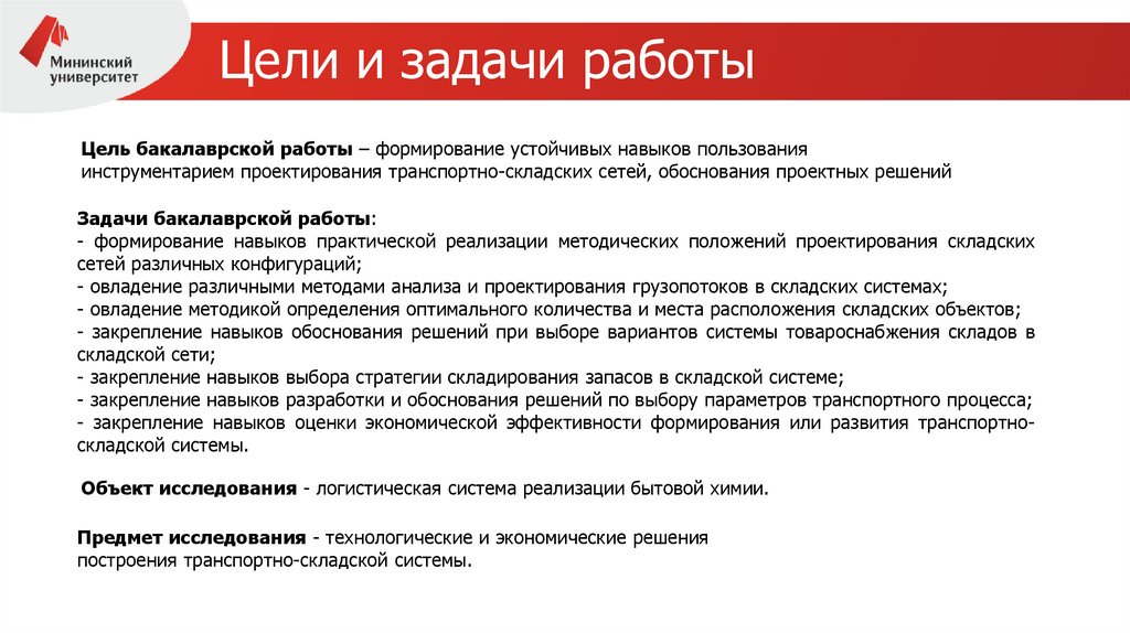 Цели и задачи работыЦель бакалаврской работы – формирование устойчивых навыков пользования