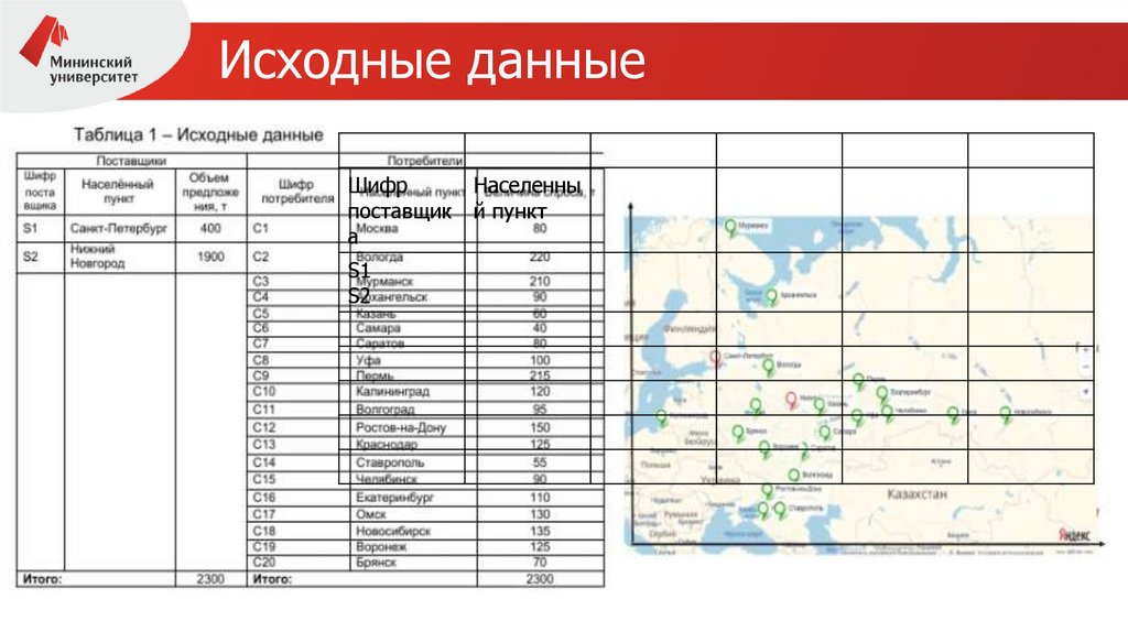 На основе анализа транспортной системы региона, дислокации объектов складской инфраструктуры были выбраны