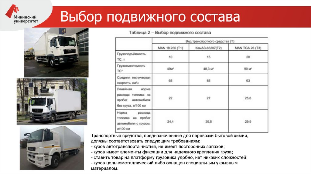 Выбор подвижного составаТранспортные средства, предназначенные для перевозки бытовой химии,