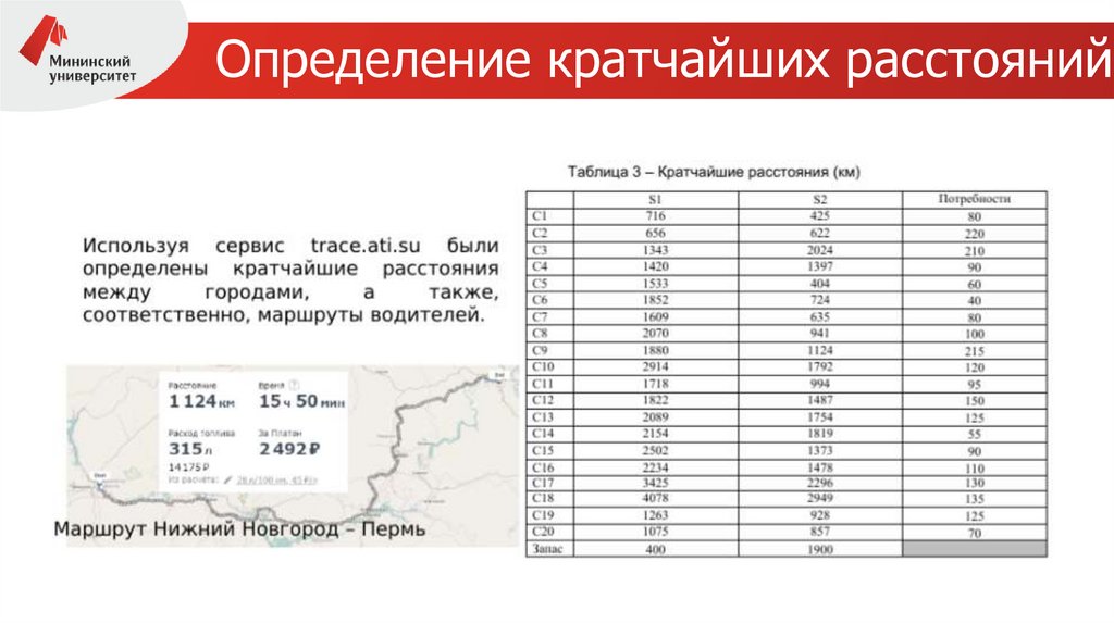 3 ВАРИАНТ Поставки через центральный склад, позиционированный по методу «центра тяжести»
