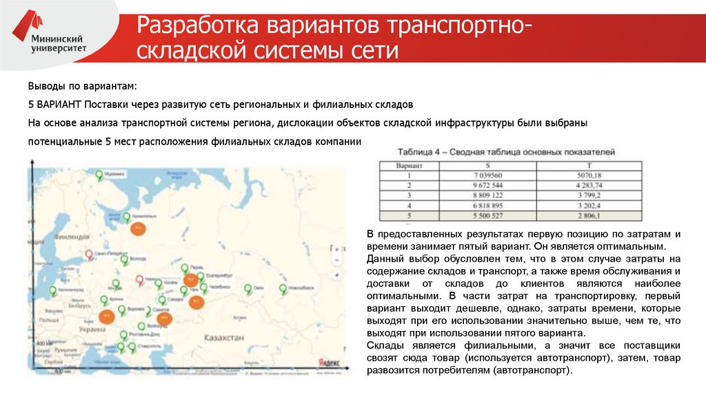 транспортно-складской сети. В качестве альтернативы может быть избран четвёртый вариант.