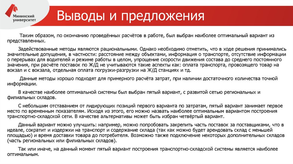 Так или иначе, на данный момент пятый вариант построения транспортно-складской системы является наиболее