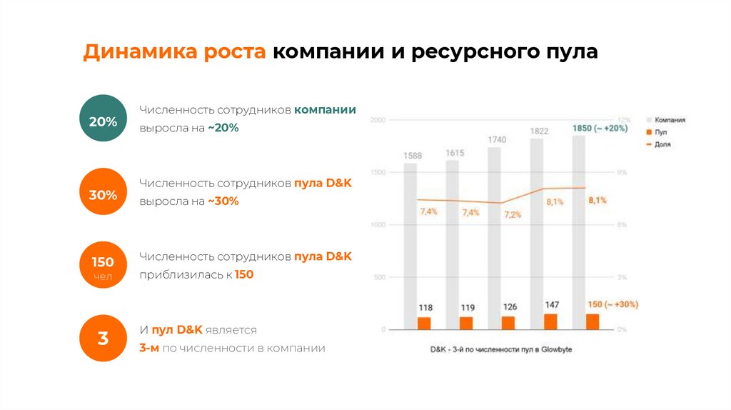 Динамика роста компании и ресурсного пула20%