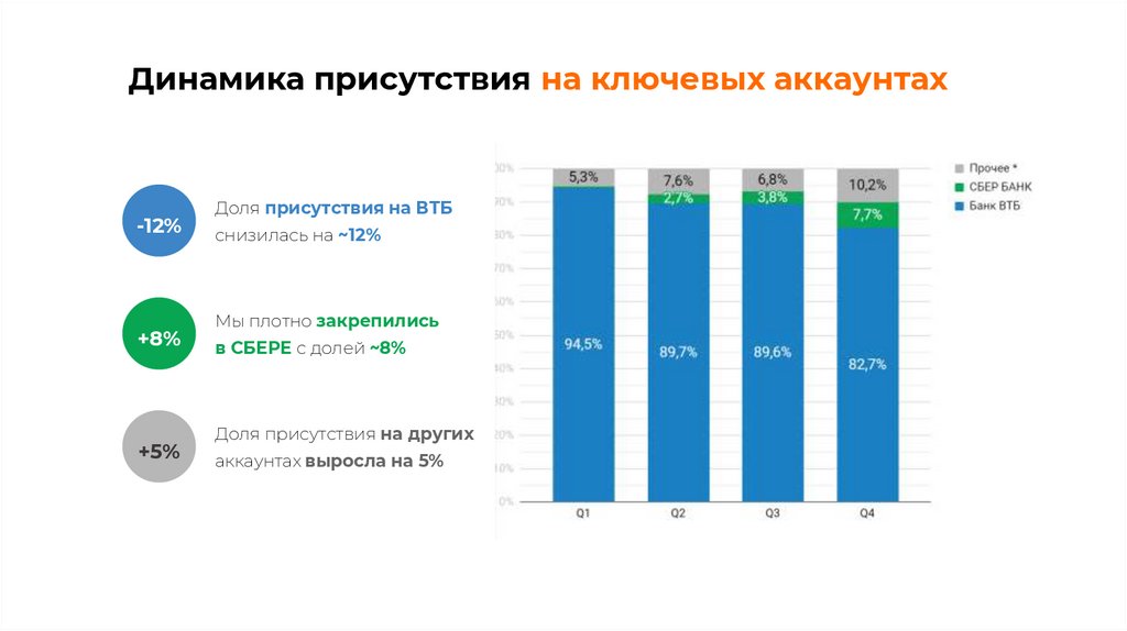 Динамика присутствия на ключевых аккаунтах-12%