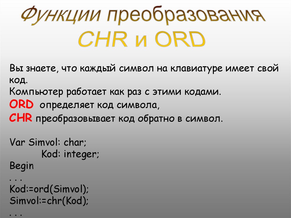 •определить код символа с помощью функции ORD,