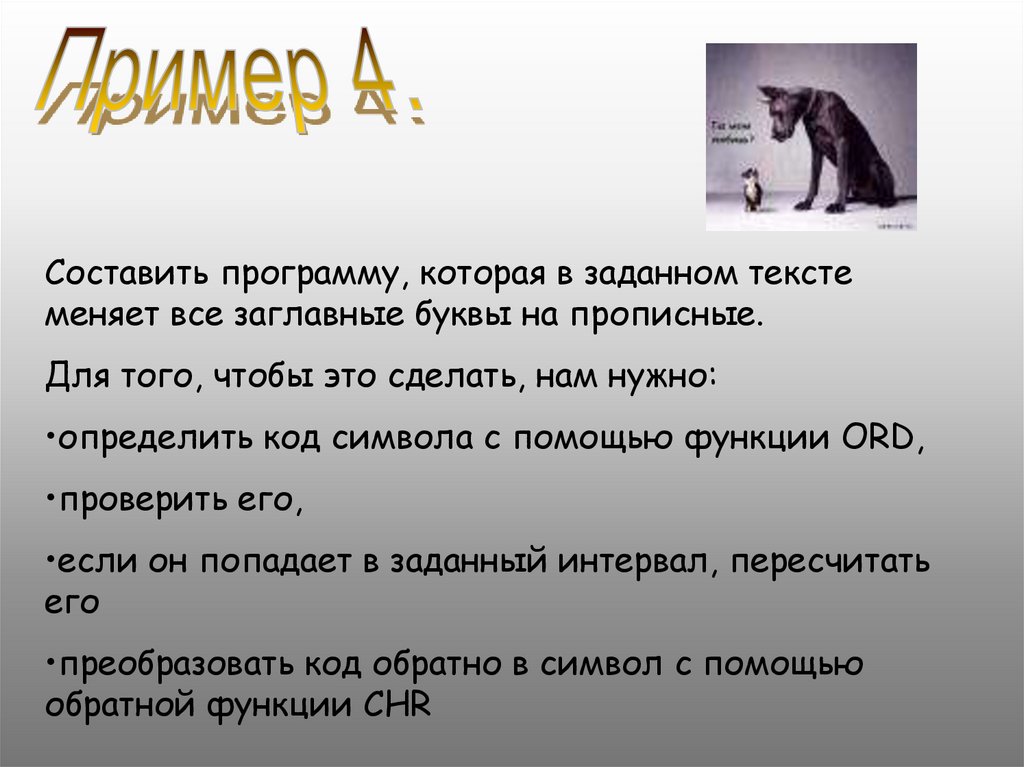 Составить программу, которая в заданном текстеменяет все заглавные буквы на прописные.