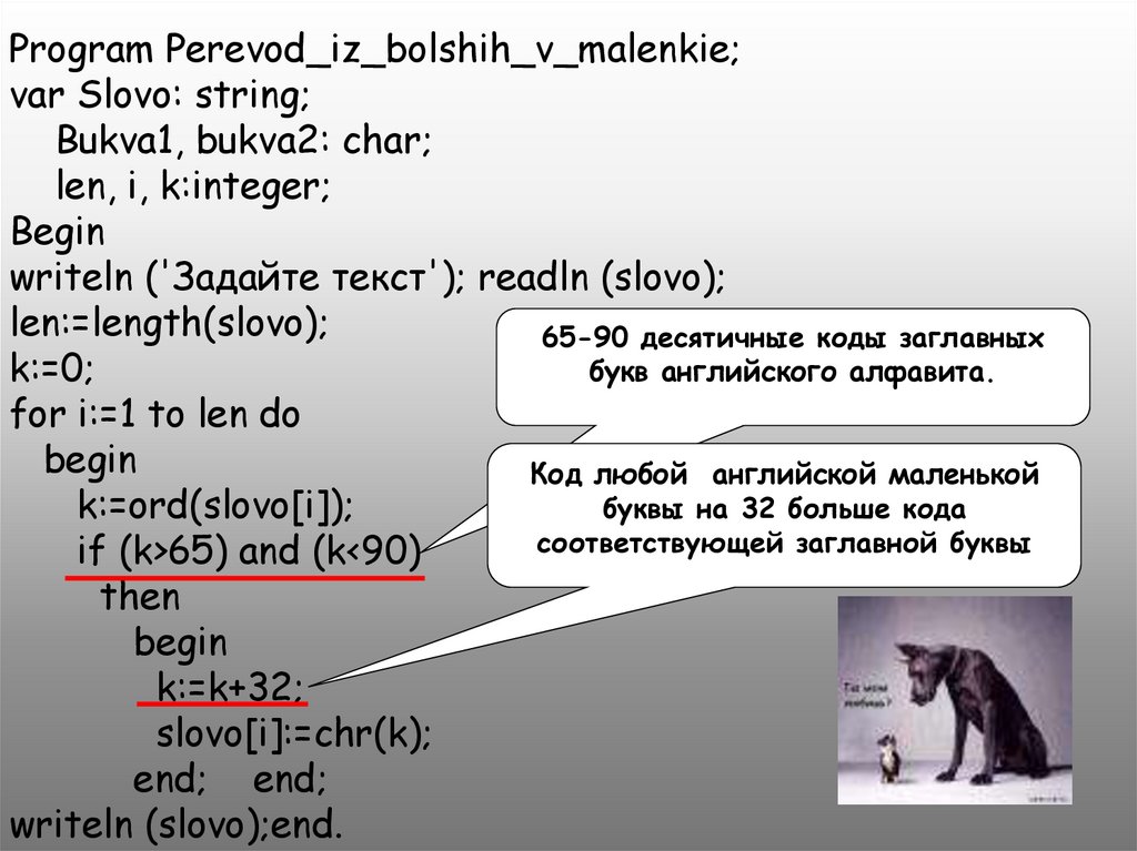 Program Perevod_iz_bolshih_v_malenkie;var Slovo: string;