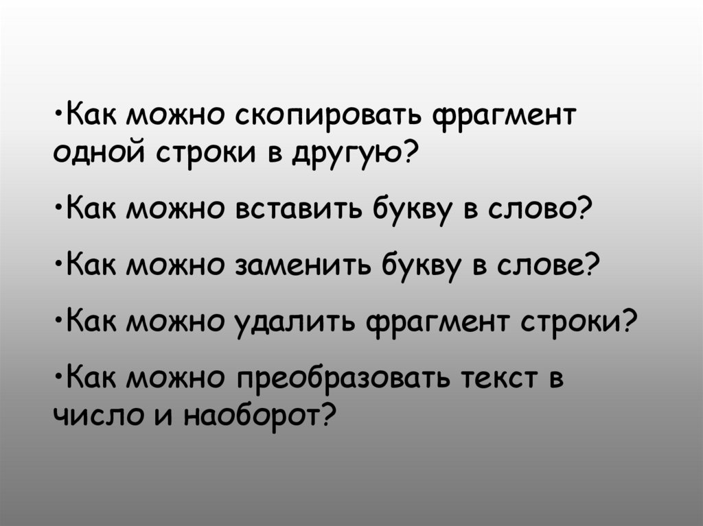 •Как можно заменить букву в слове?