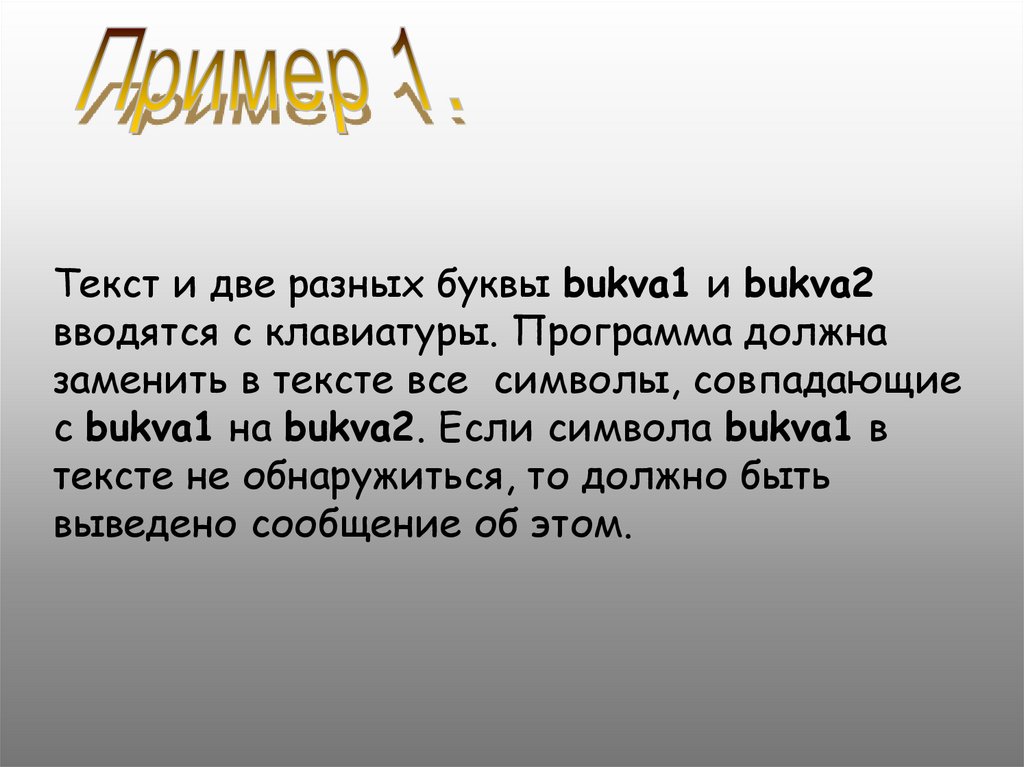 Текст и две разных буквы bukva1 и bukva2вводятся с клавиатуры. Программа должна