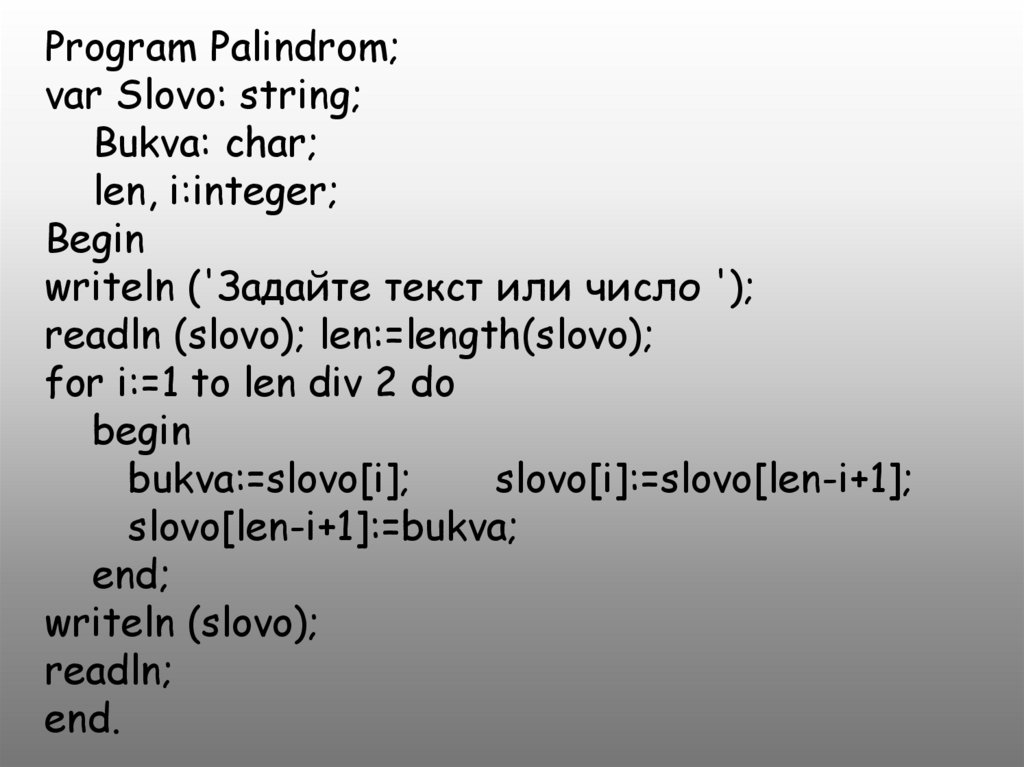 slovo[len-i+1]:=bukva;
